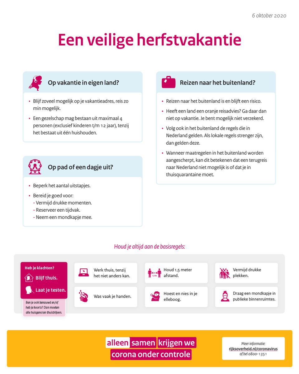 Rijksoverheid On Twitter De Herfstvakantie Staat Voor De Deur En Deze Periode Is Dit Jaar Door Het Coronavirus Anders Dan Normaal Ga Je Toch Op Vakantie Of Een Dagje Weg Houd Je